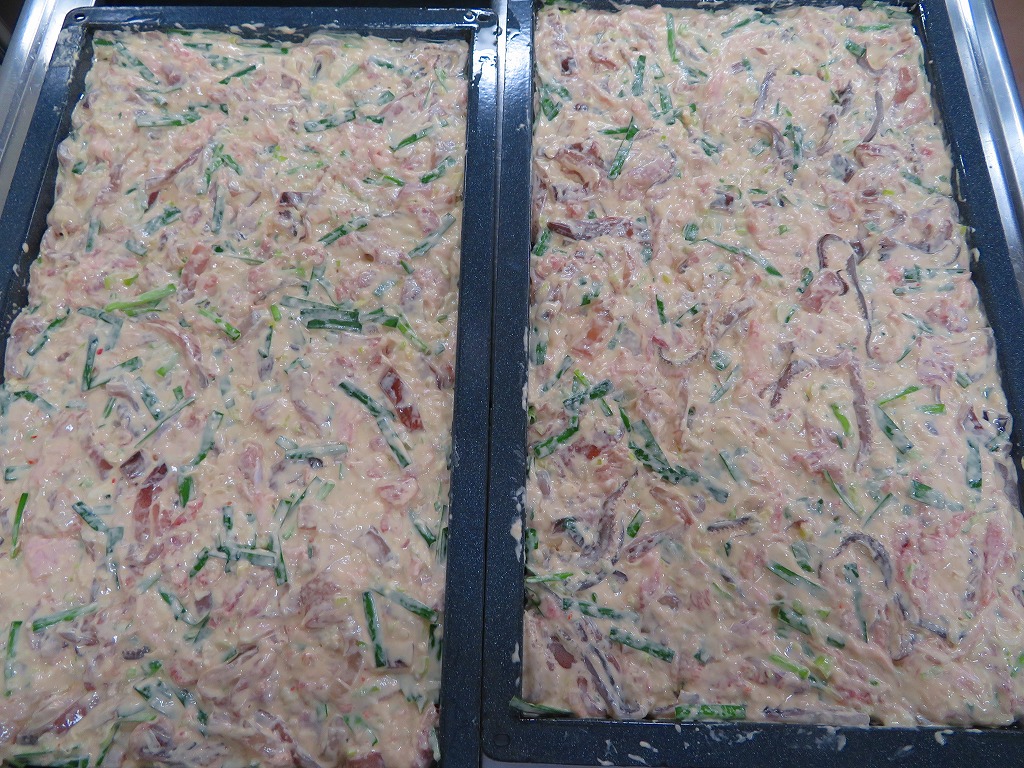 そして、きれいに鉄板に流し入れ、オーブンで焼きました。