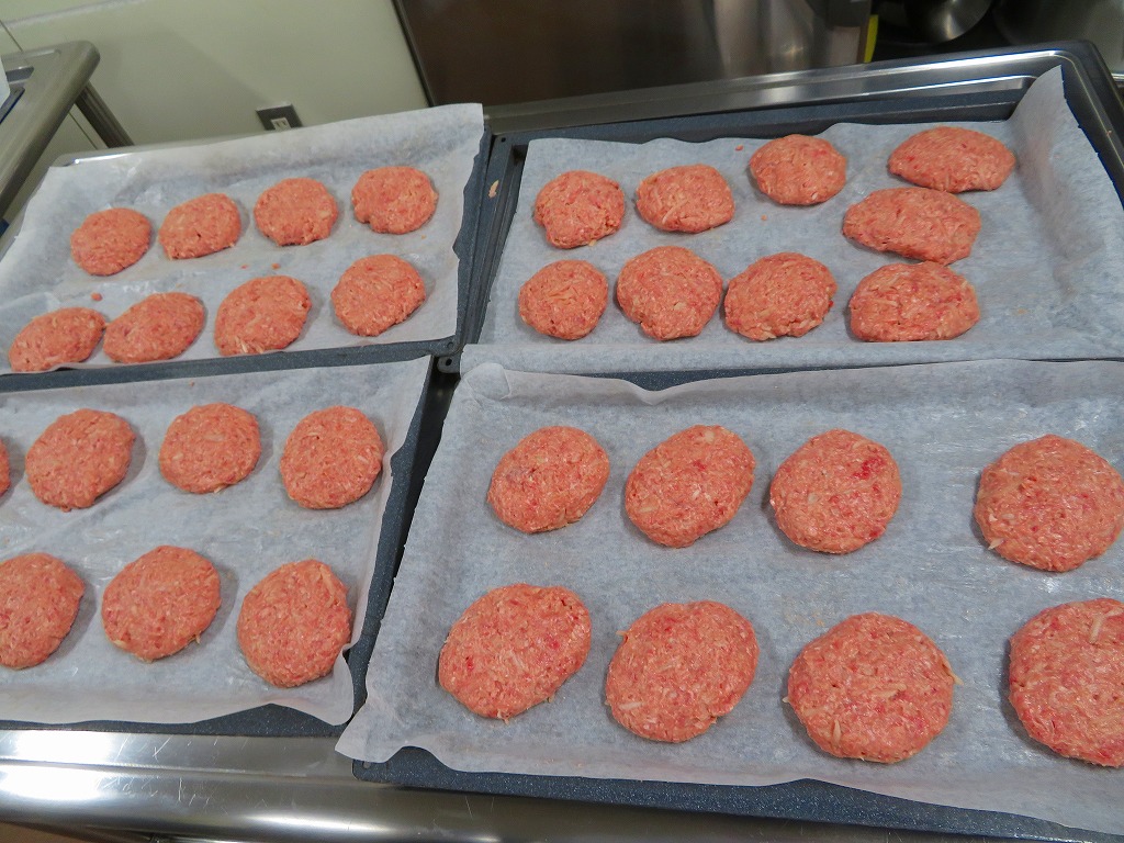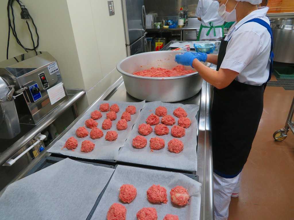 本校の手作りハンバーグは、絹ごし豆腐を少し(肉の量の半分くらい)