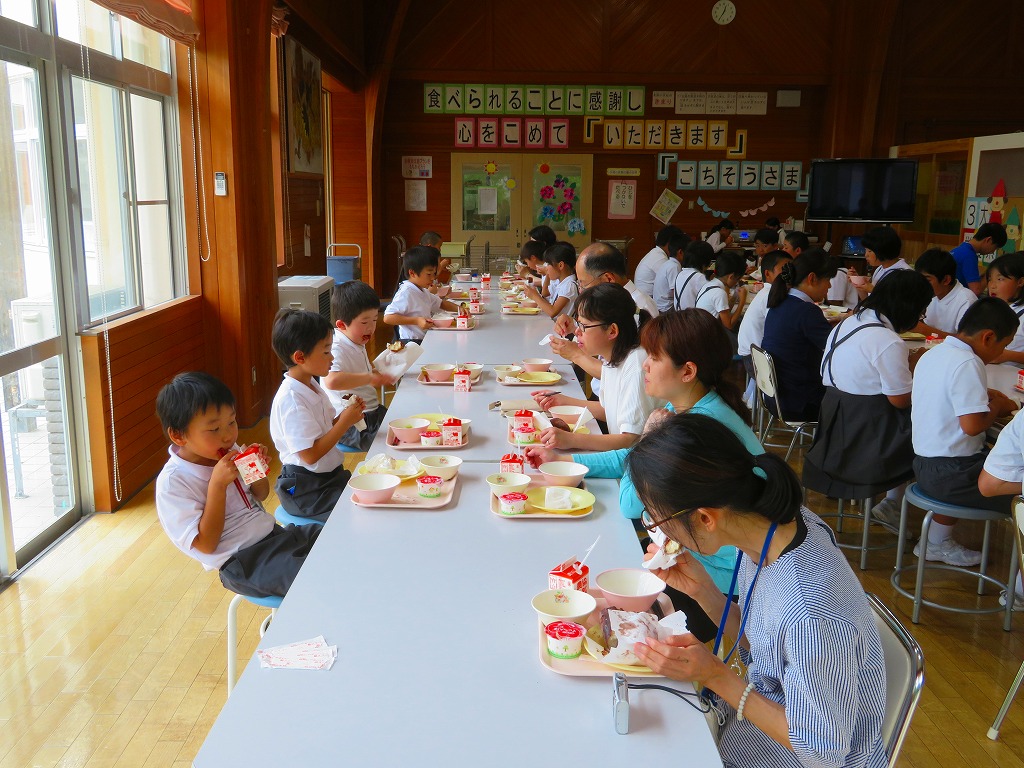 また、今日は町野小学校の1年生親子給食会へ行きました。