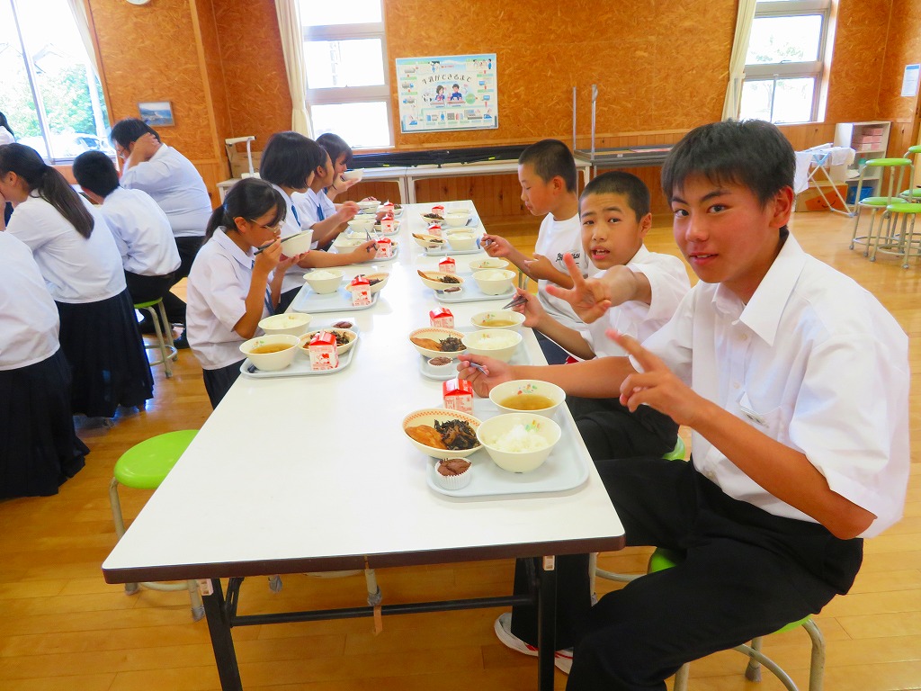 普段は学年別に給食を食べているのですが、今日は生活学習・給食委員会の