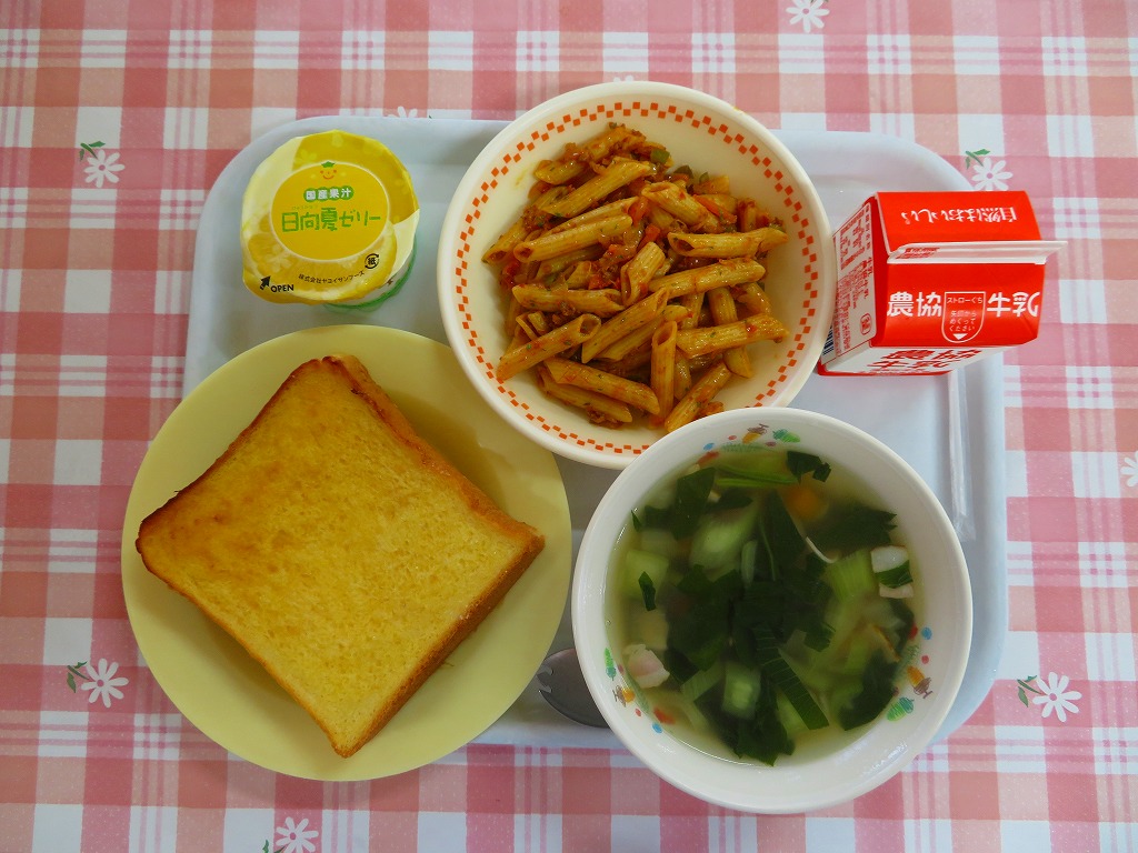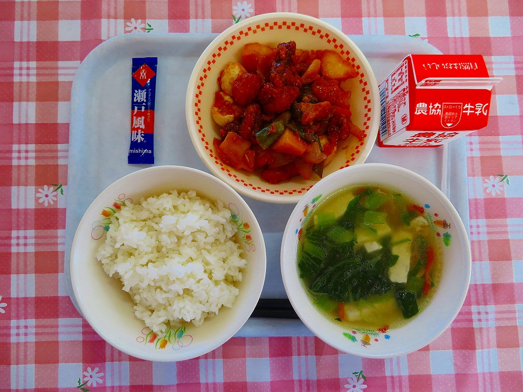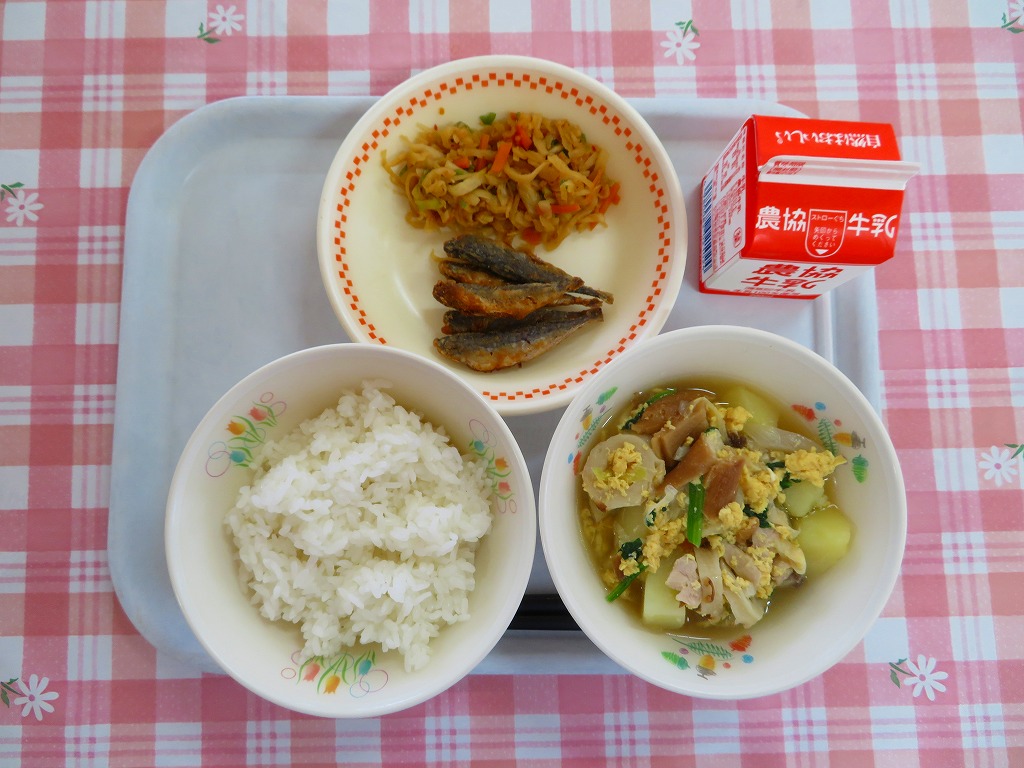 を変えて給食に登場しています。今日は、キムチを加えてピリ辛炒めに