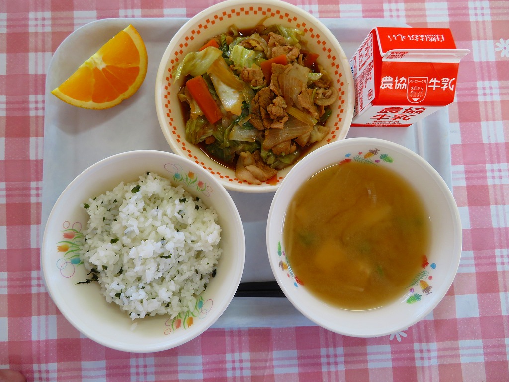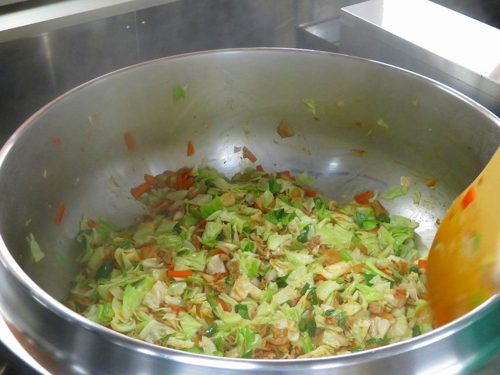 今日は野菜と肉がたっぷりのホイコーローです。給食では安全面から、