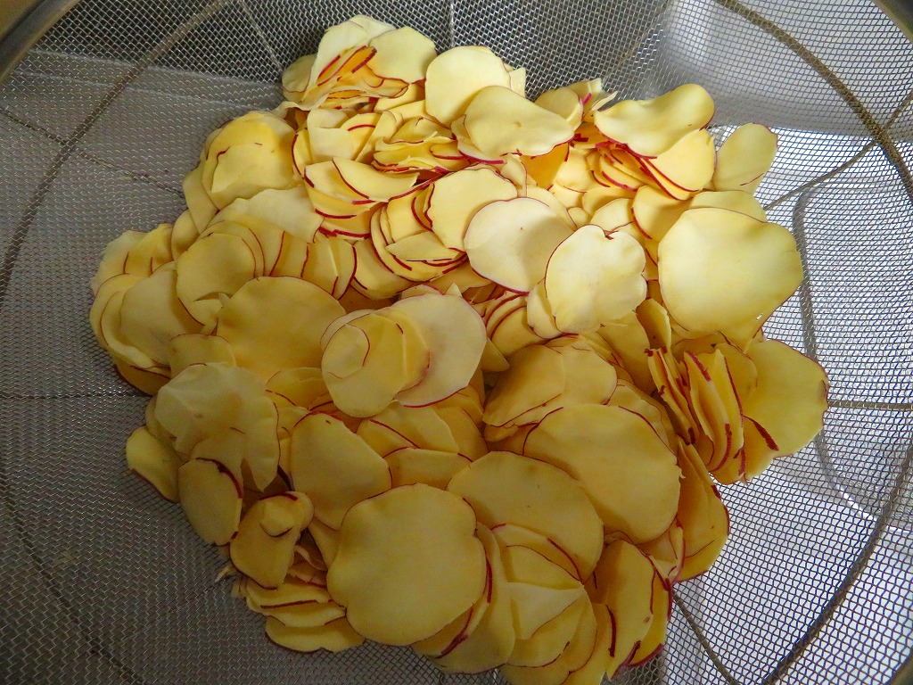 今日は地域の方からさつまいもをいただいたので、さつまいもチップスを