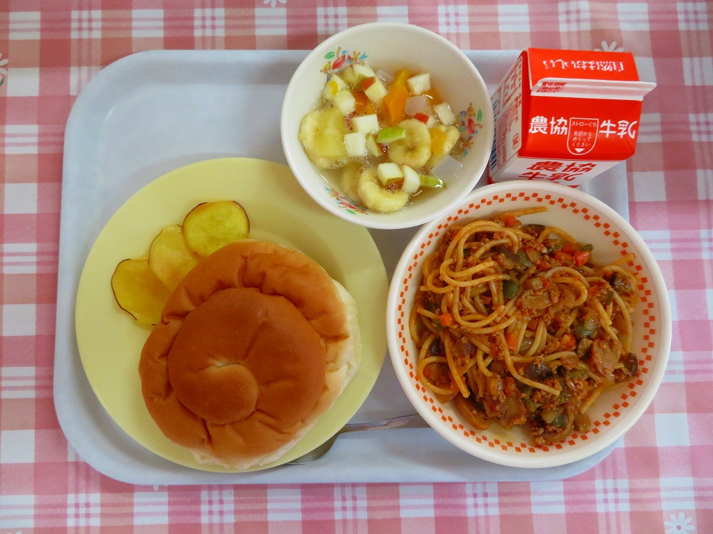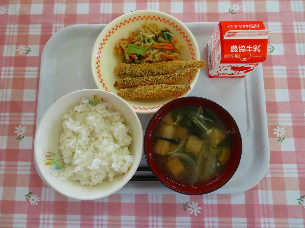 給食の人気メニューです。今日もみんな食べ終わるのが早く、残食も