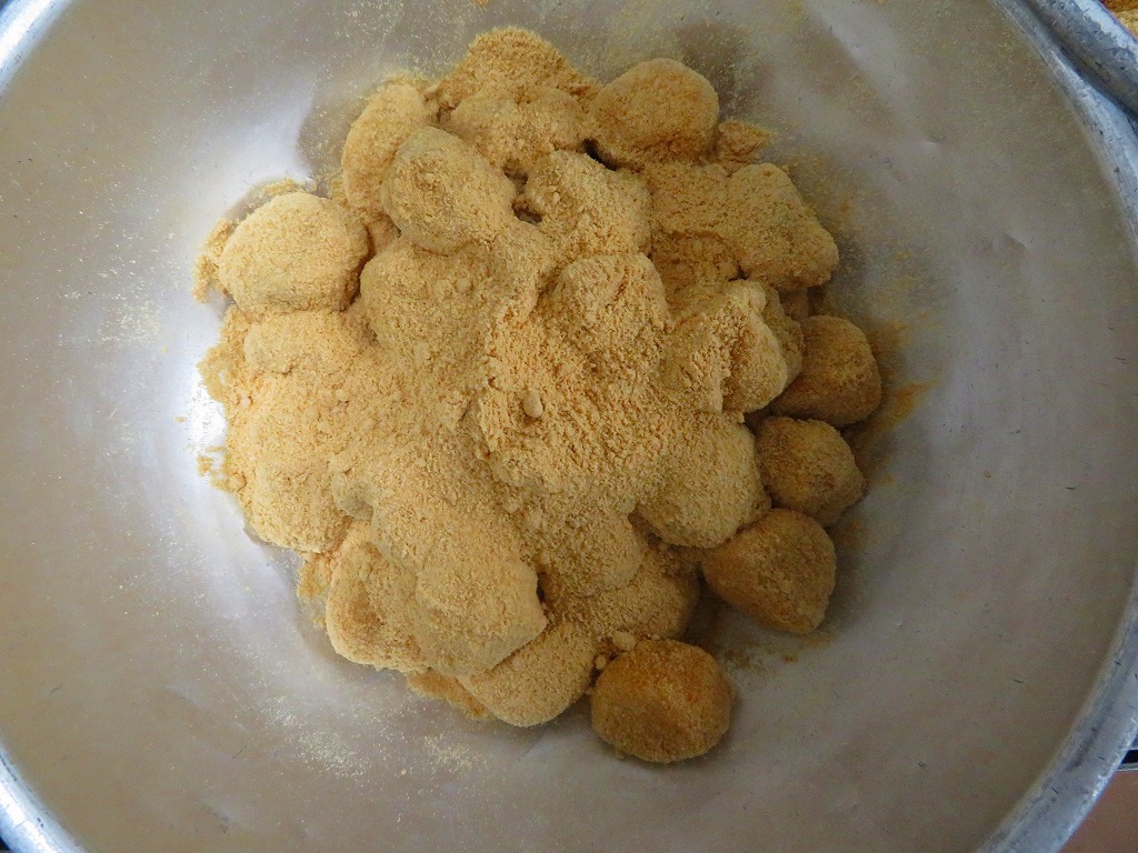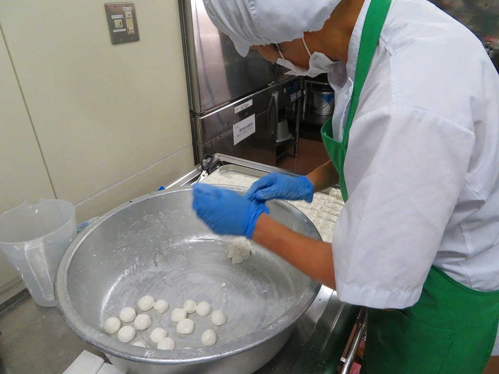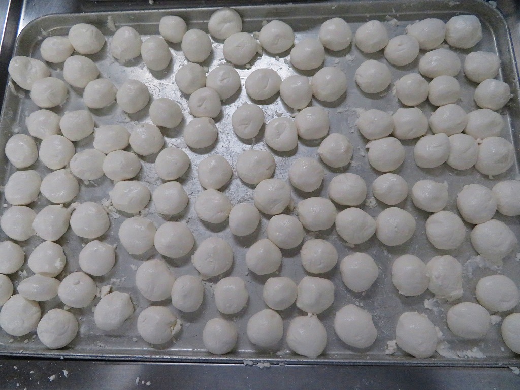 白玉粉をよくこねて1個1個かたちを整えながら丸めました。