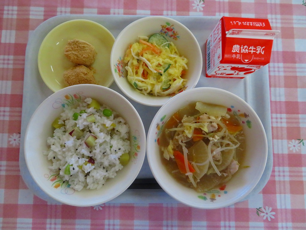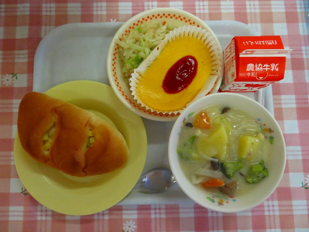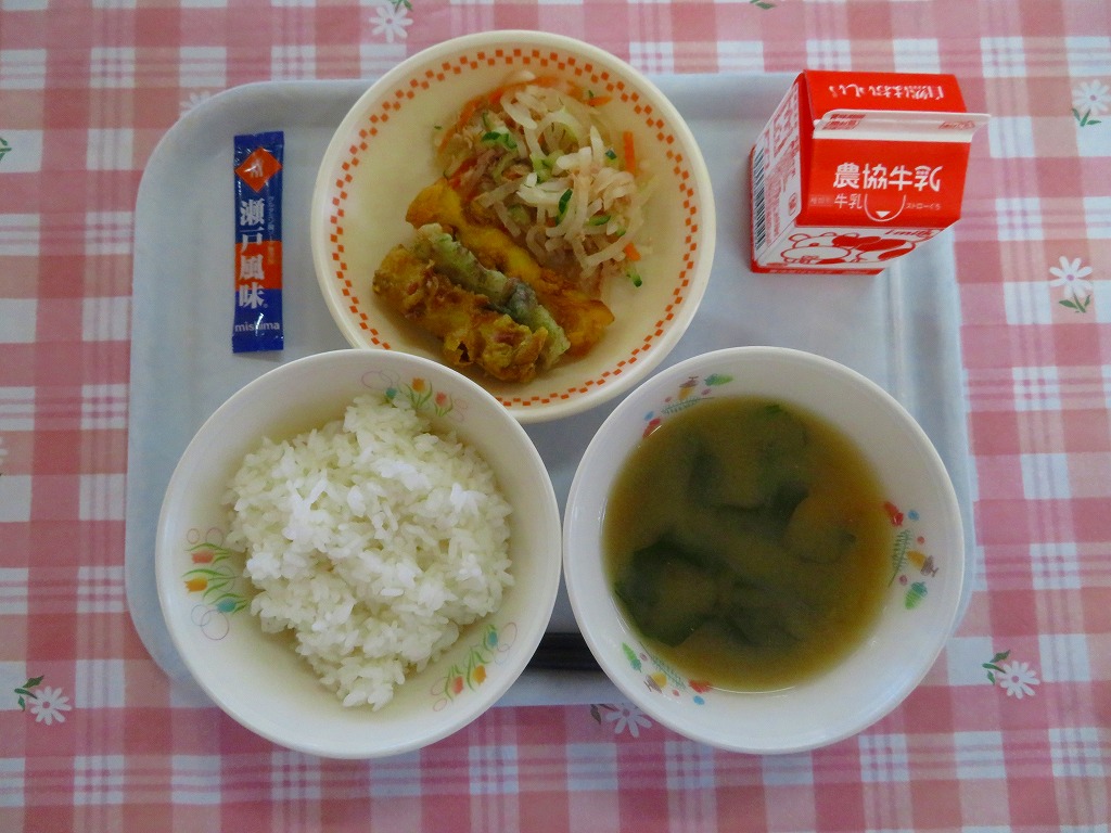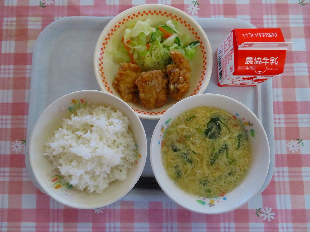 給食の人気メニューです。今日もみんな食べ終わるのが早く、残食も
