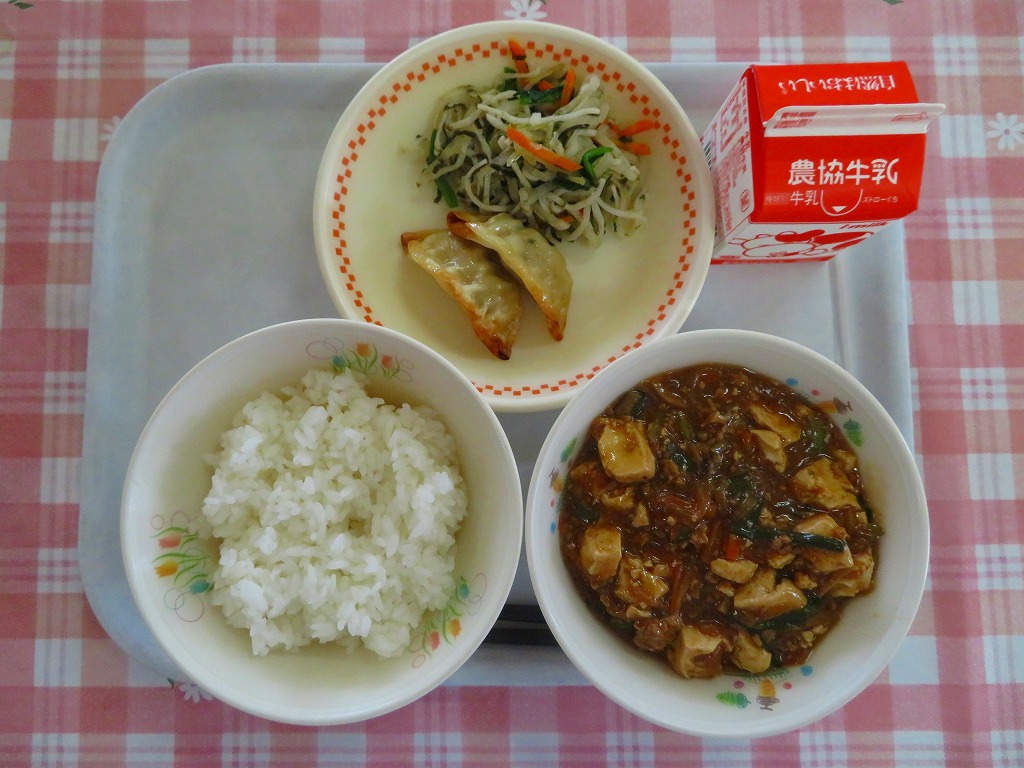 今日は中華メニューでした。マーボ豆腐は赤みそ、トウバンジャンなど