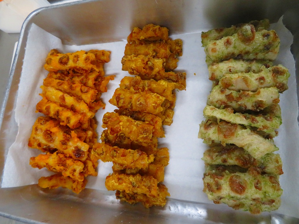 今日は、ちくわを三種類の味付けで揚げるちくわの三色揚げを作りました。