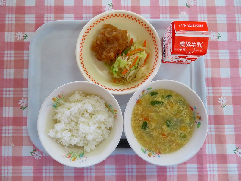 少し甘酸っぱくさわやかな味になりました。また、コーンスープは生徒