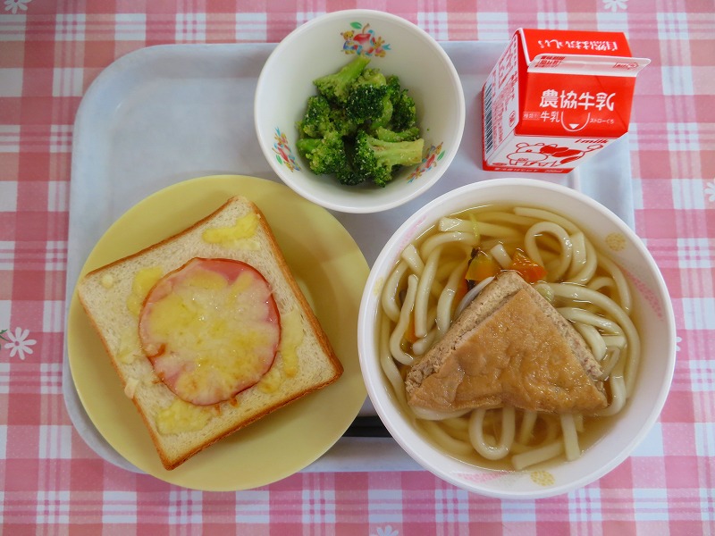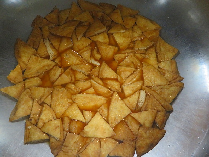 今日は、きつねうどんを作りました。一人一枚ずつ大きな油揚げを