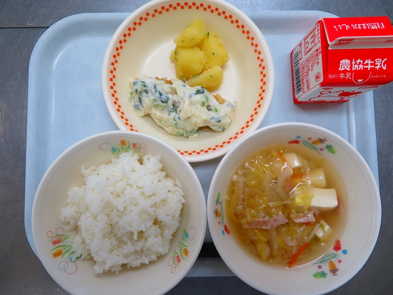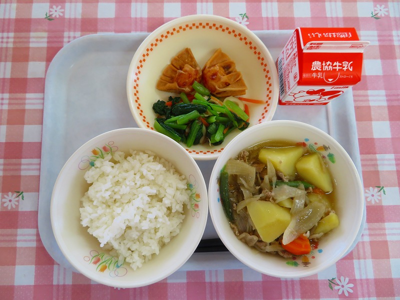 今月の給食はじゃがいも・たまねぎを地元の農家さんのものを使わせて