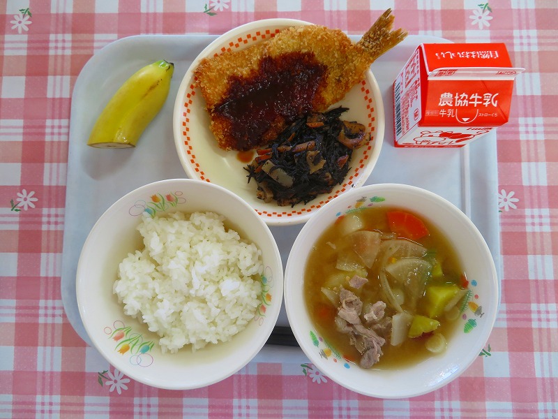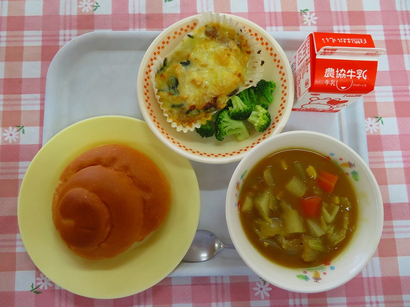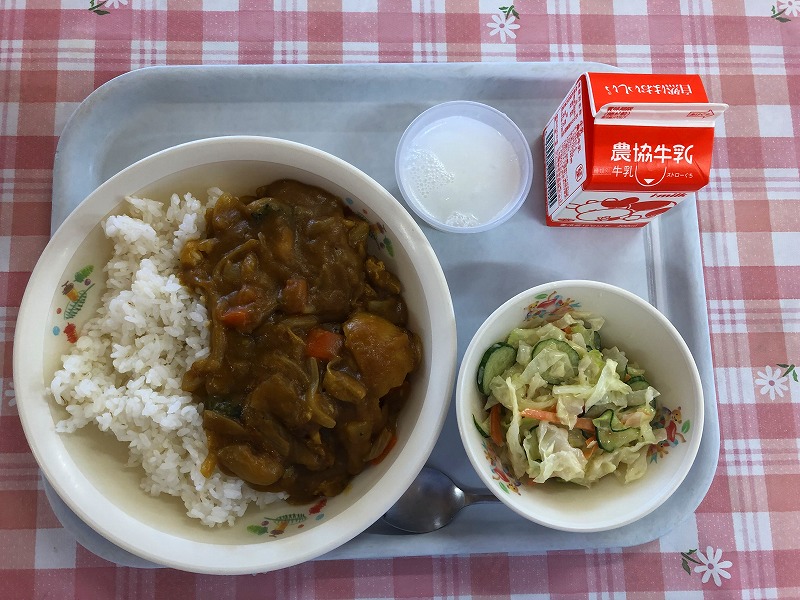 今日は、短縮授業で早い給食だったので、食べやすいカレーライスに