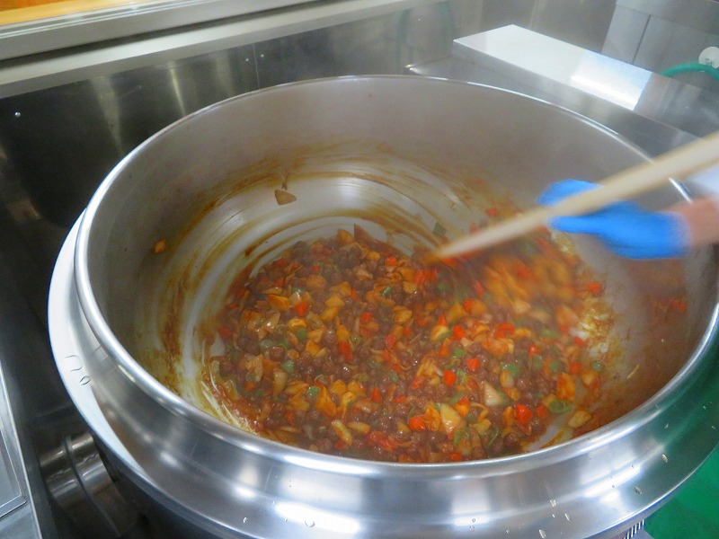 今日は初めて生地からカレーパンを作りました。調理員さんは、何度も試作