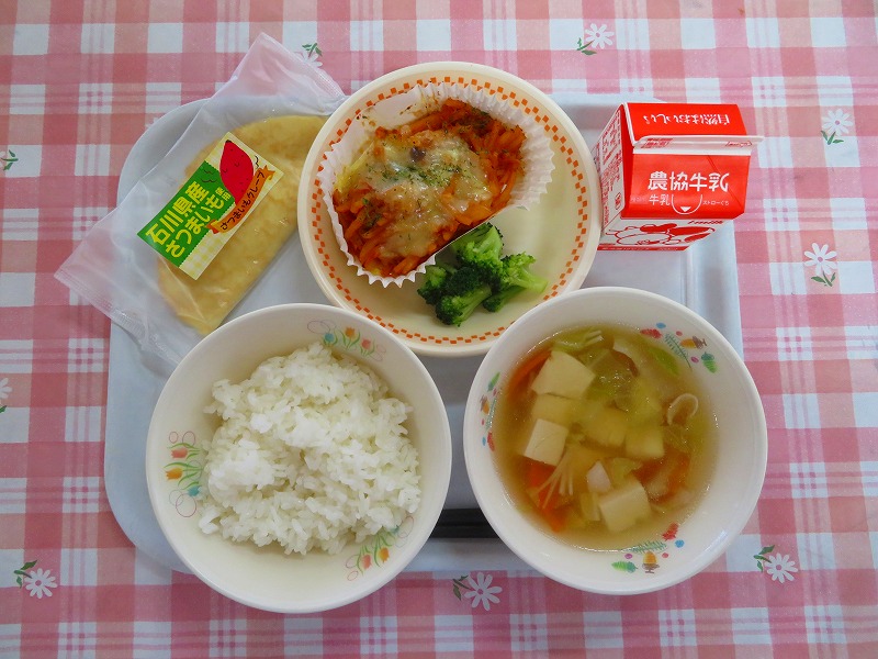 今日はクリスマスイブなので、少しクリスマス気分を味わえるような給食