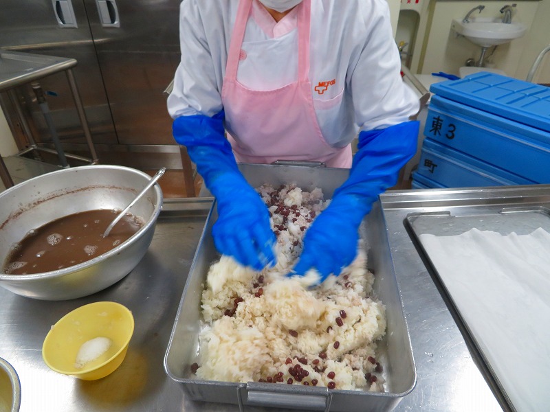 ました。生徒だけではなく、職員、調理員などたくさんの人達に小豆の