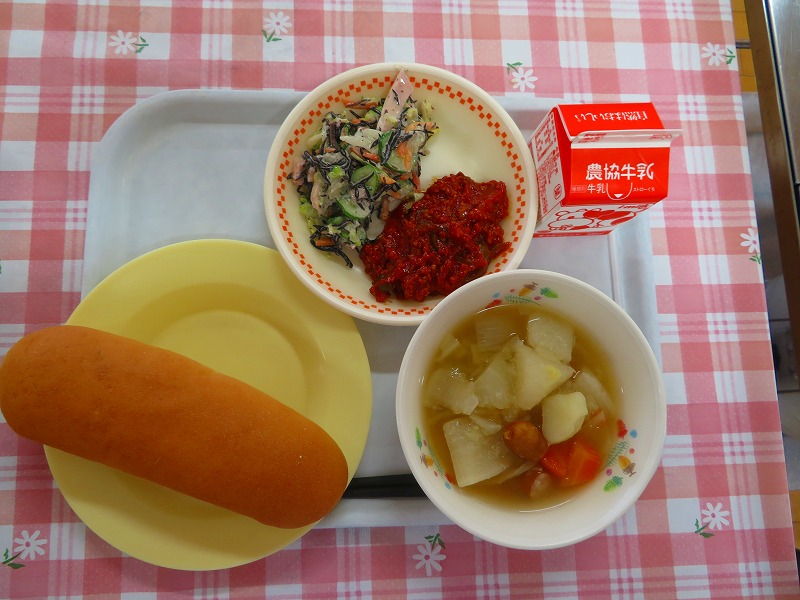 切り干し大根のぴりからいためも給食の定番メニューですが、ぴりから