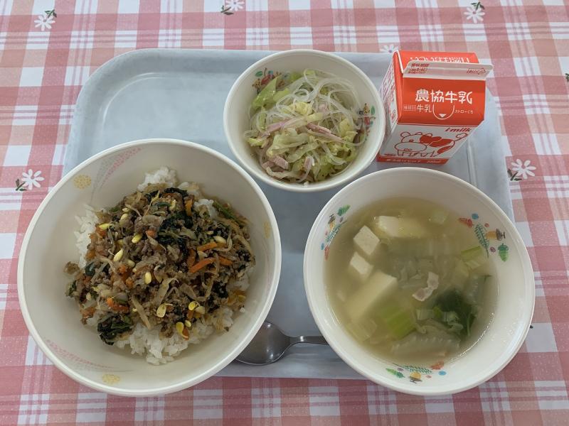 今日の給食は、ビビンバでした。食べやすい献立だったおかげか、