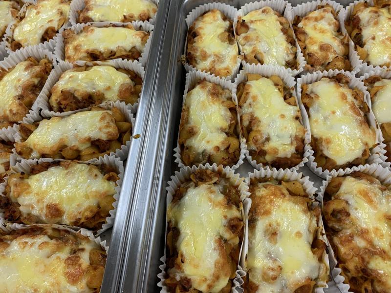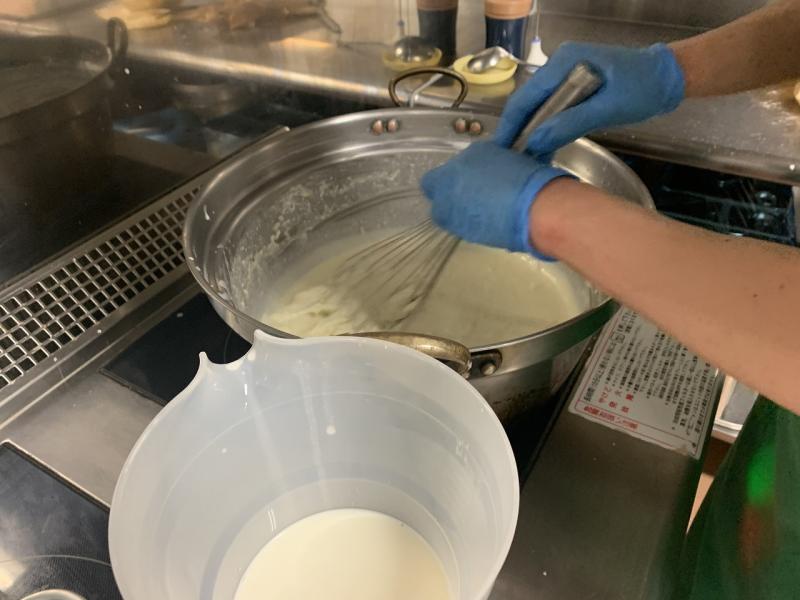 今日は、ラザニア風をつくりました。ホワイトソースも手作りしてもらいました。