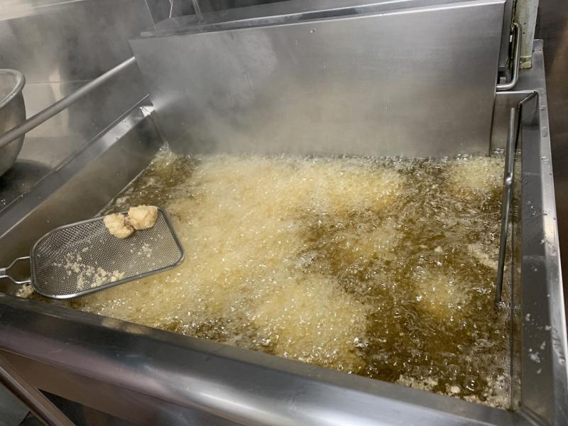 2回目は、しょうゆ等で味付けして、米粉を付けて油で揚げました。