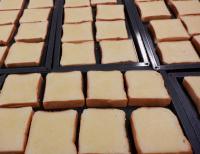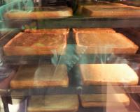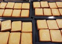 バター・はちみつ・グラニュー糖を練り合わせたものを食パン塗り、スチコンで焼き上げます。