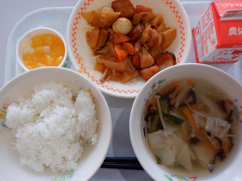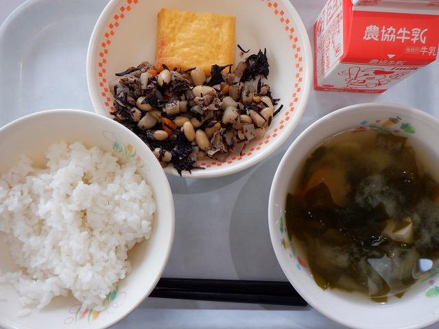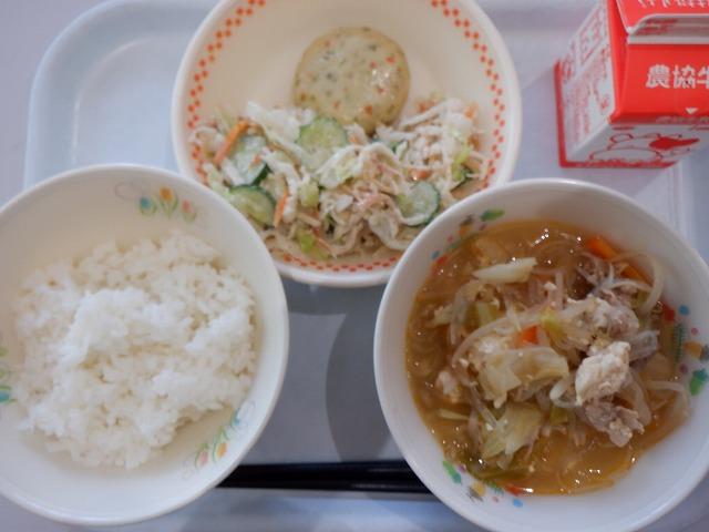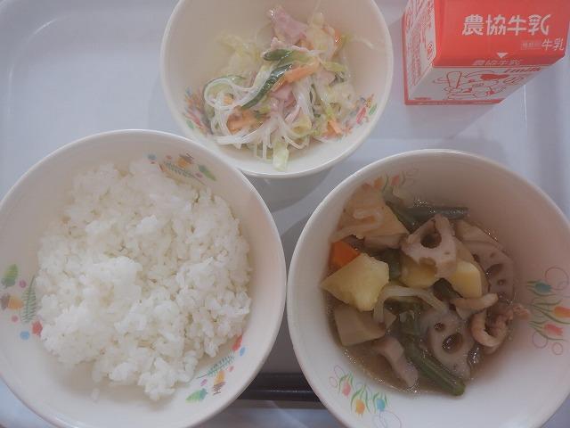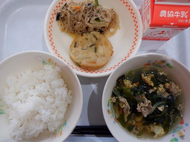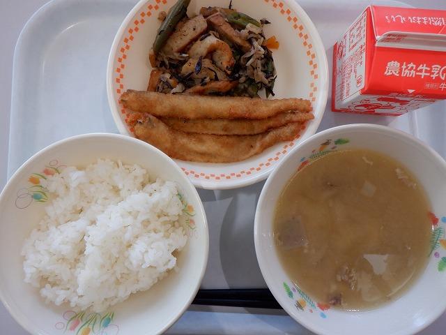 たんぱく質たくさんの給食です。明日で中間テストも終わるので、スタミナつけましょう。