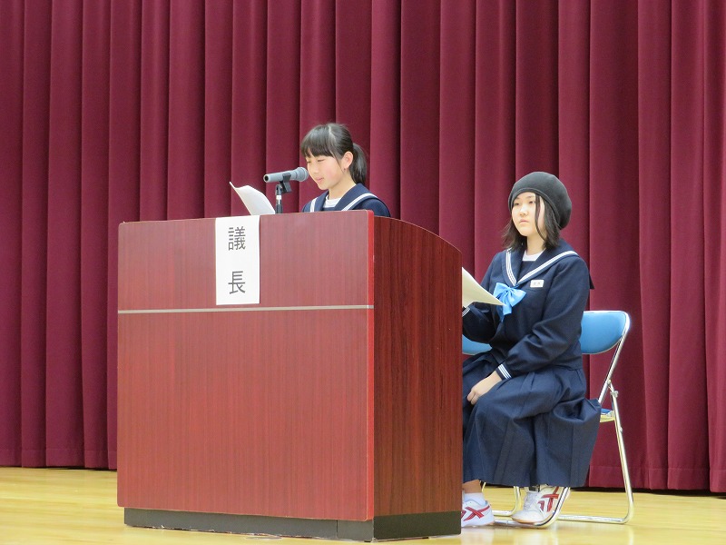 意見発表では、3年生の中口さんが修学旅行で学んだことを