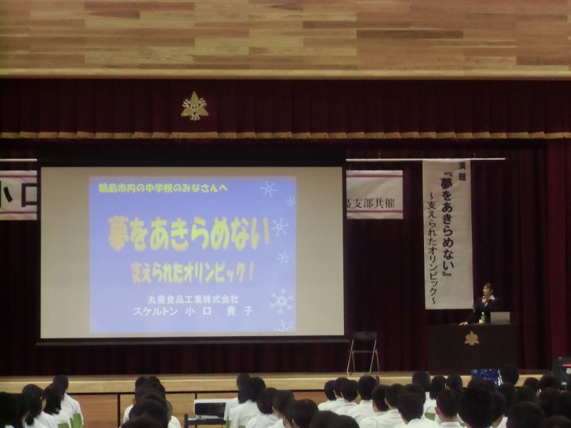 スケルトンに出場した小口貴子選手(旧松陵中学校出身)の講演会が
