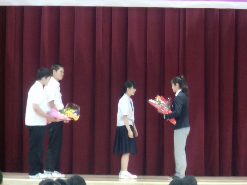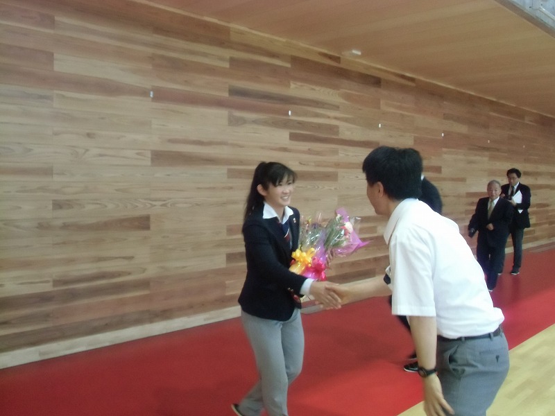 最後に各学校代表より花束贈呈があり、本校からは生徒会副会長の谷さんが