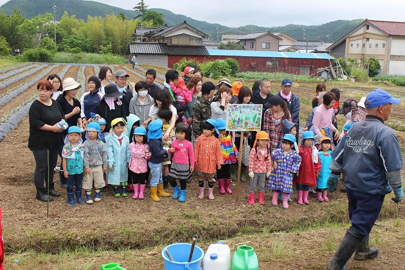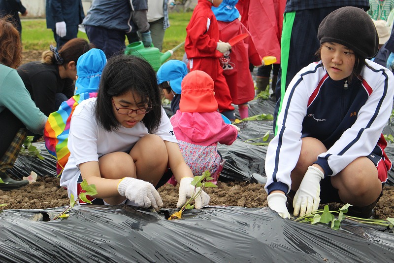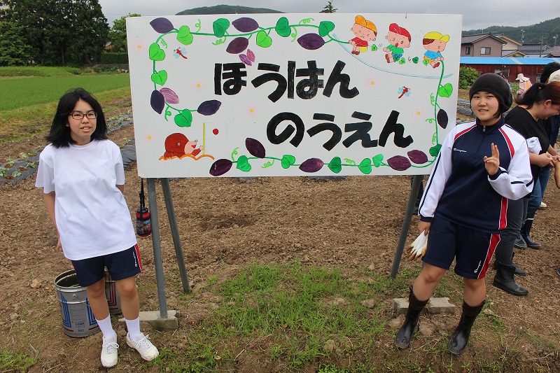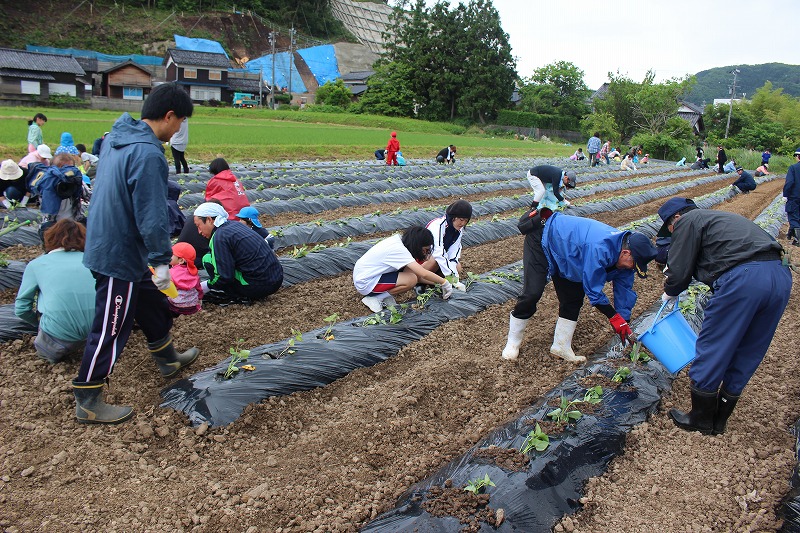 防犯農園が行われました。JA町野裏にある畑にサツマイモの苗と