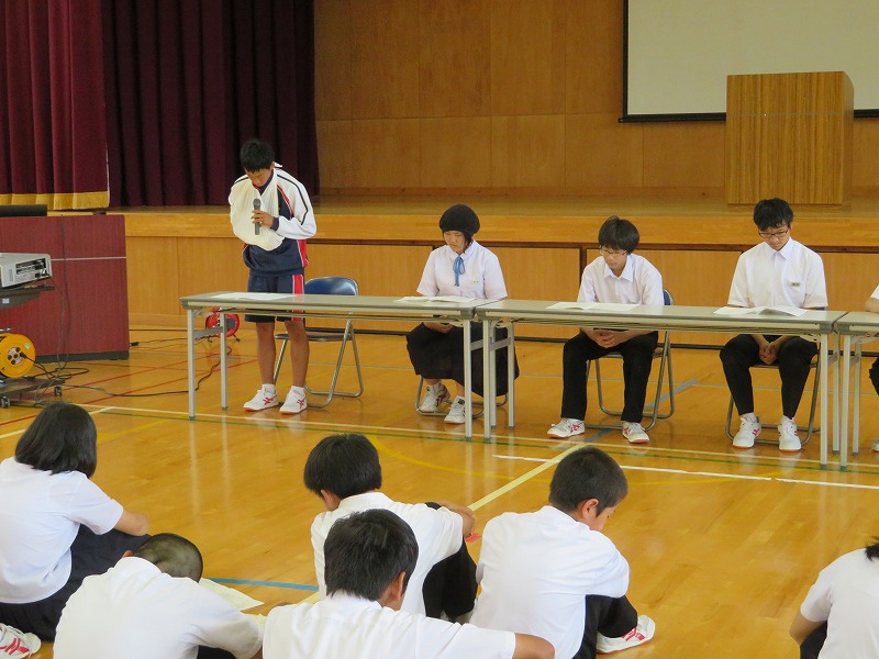6月12日(火)に生徒集会を行いました。はじめに、各専門委員会からの先月の