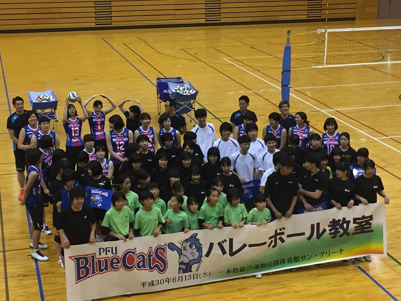 PFUブルーキャッツが市内の小中高生を対象にバレーボール教室を行ってくれました。