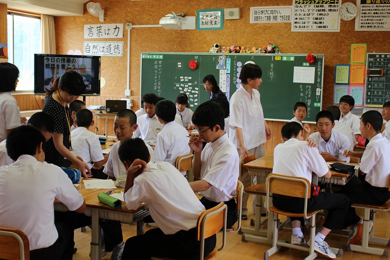 6月21日(木)、門前中・東陽中の2年生が合同授業(国語・英語)を