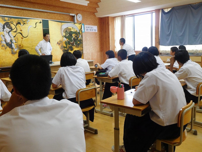 2年美術「風神・雷神の屏風をみて、色や表情・構図について考える。」