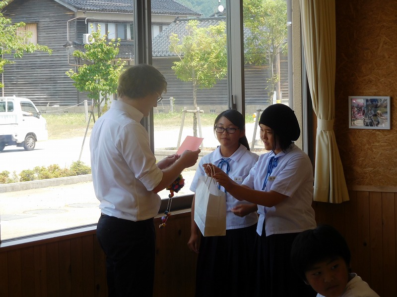 お別れ会を行いました。生徒から手作りのプレゼントや手紙を渡しました。