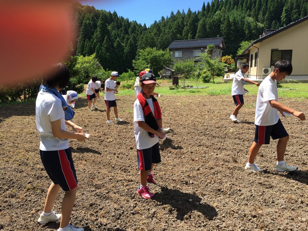 7月23日(月)、2年生が金蔵の向さんの指導を受け、ソバの種植えを