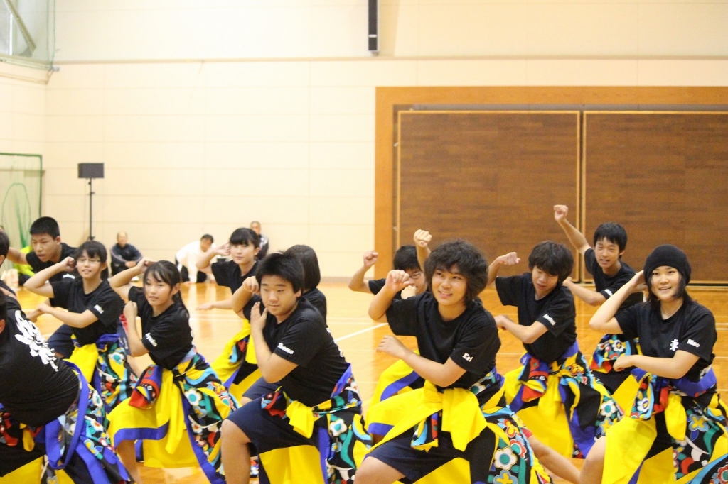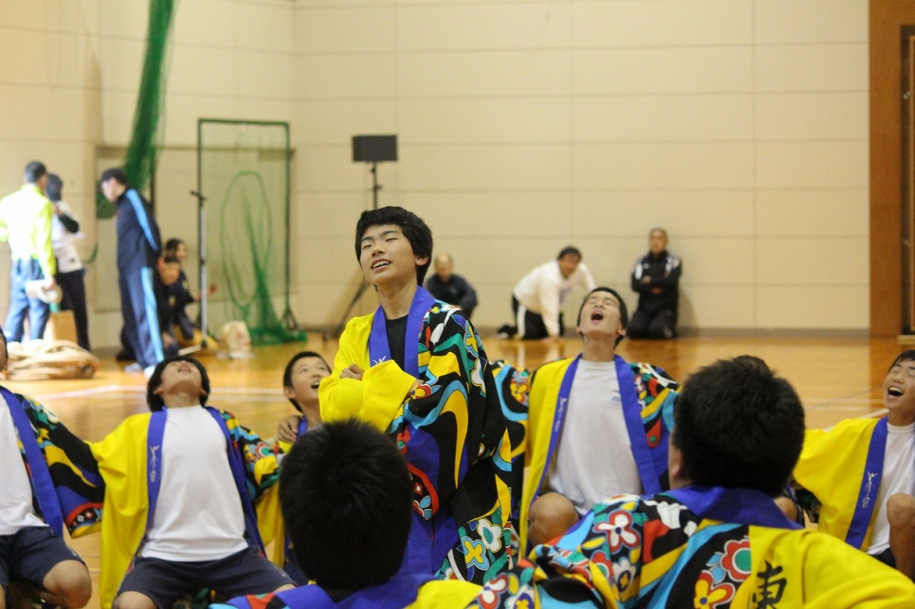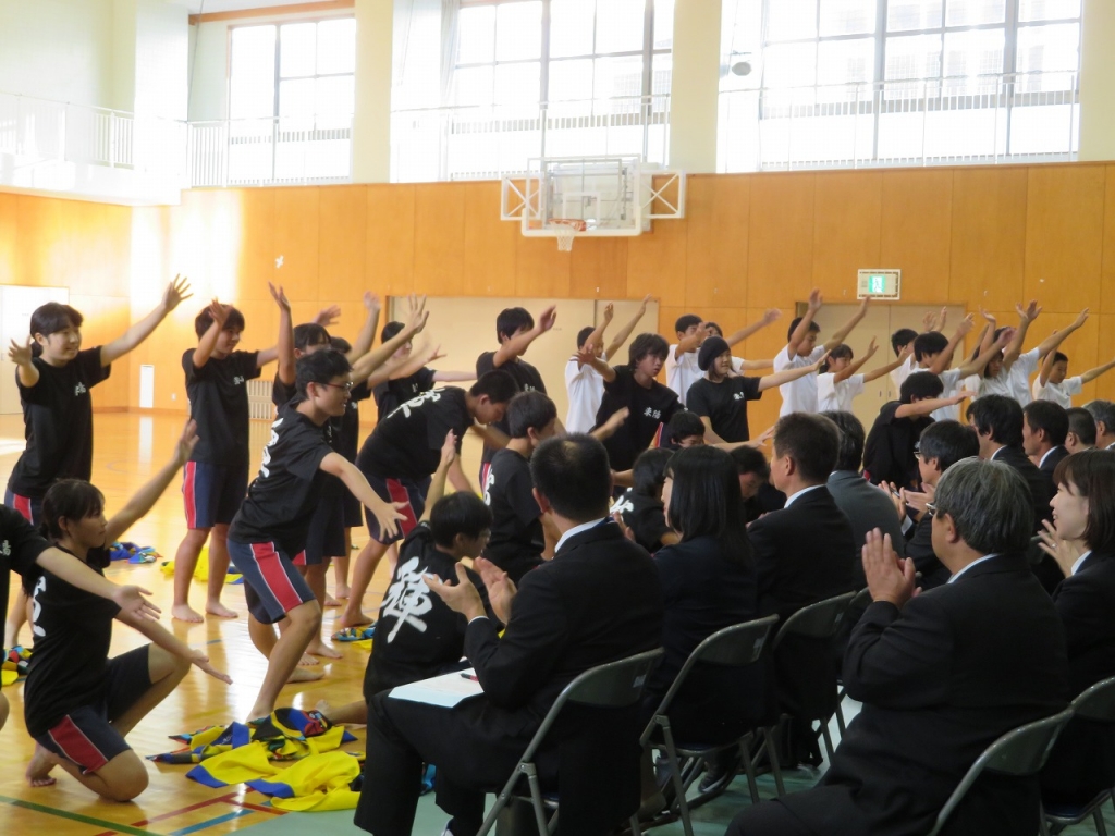 ため、全校生徒で「よさこい」を披露させていただきました。
