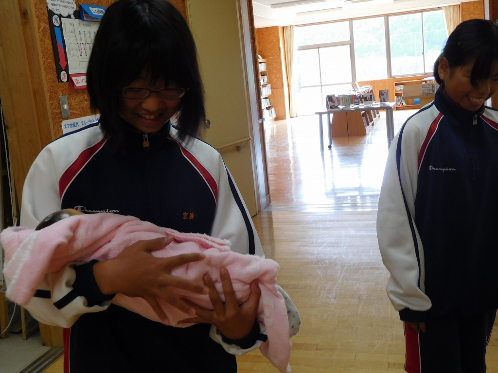 胎児の映像や赤ちゃん人形を用いて、からだや心の変化について知り、