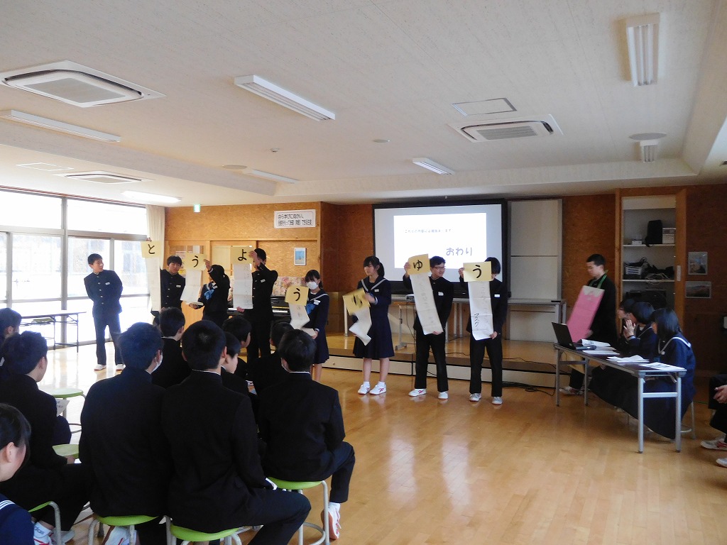 後期第2回の生徒集会がありました。3学期は議案の提案等、2年生が中心に