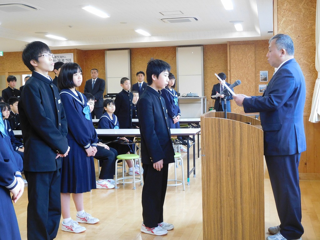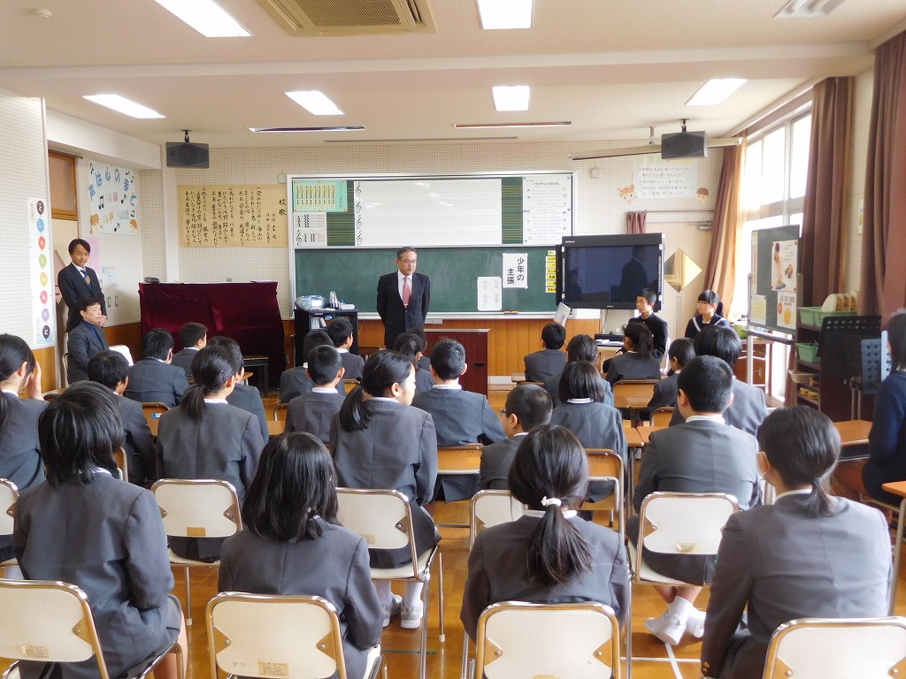 小の3~6年生に「少年の主張」を発表しました。小学生からは「東陽中の伝