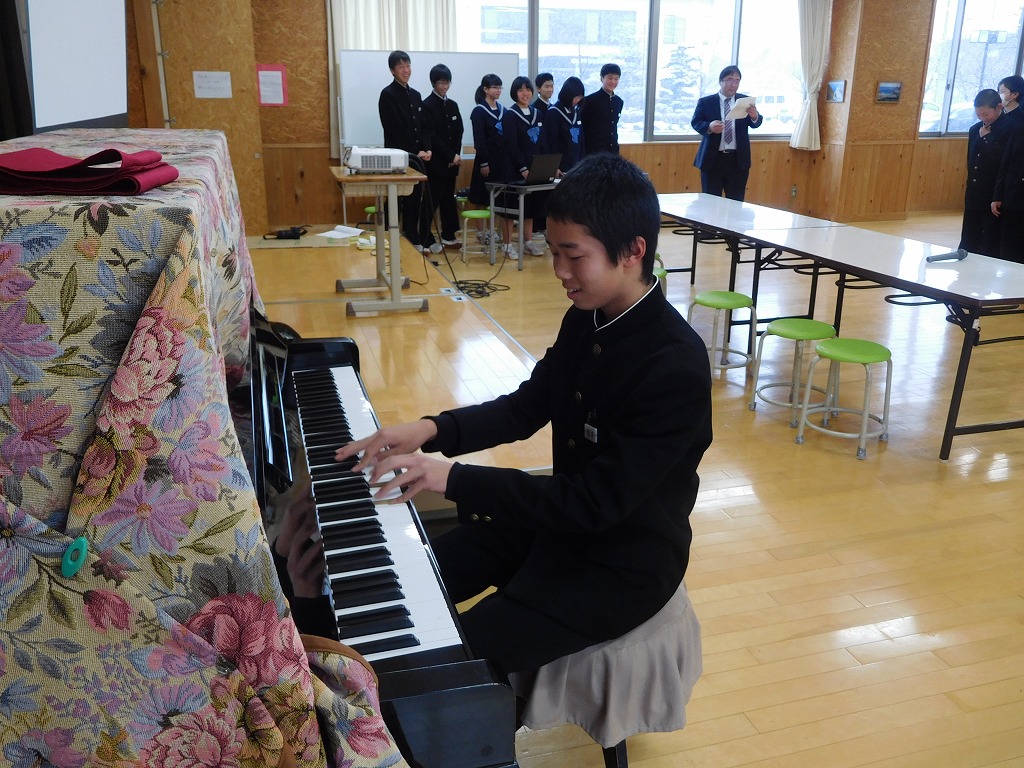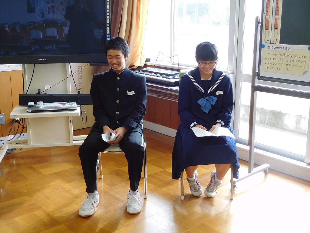 1月19日(土)の土曜授業で、3年中口さん、2年松本くんが町野小・南志見