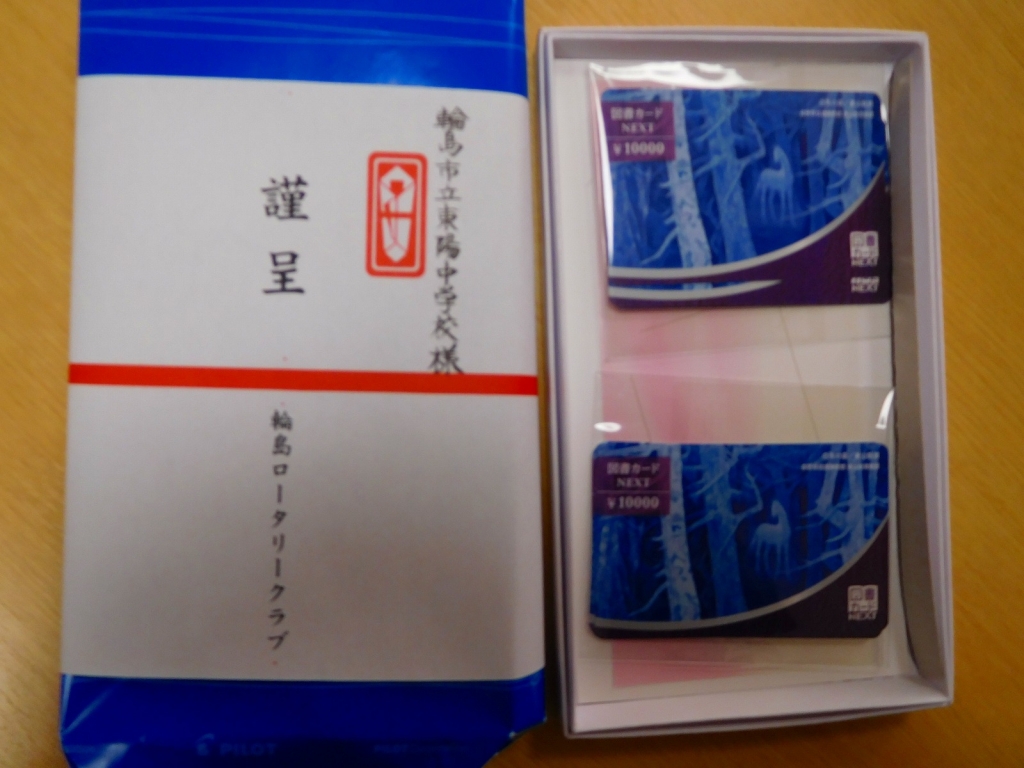 輪島ロータリークラブ様より創立55周年の記念として図書券10万円