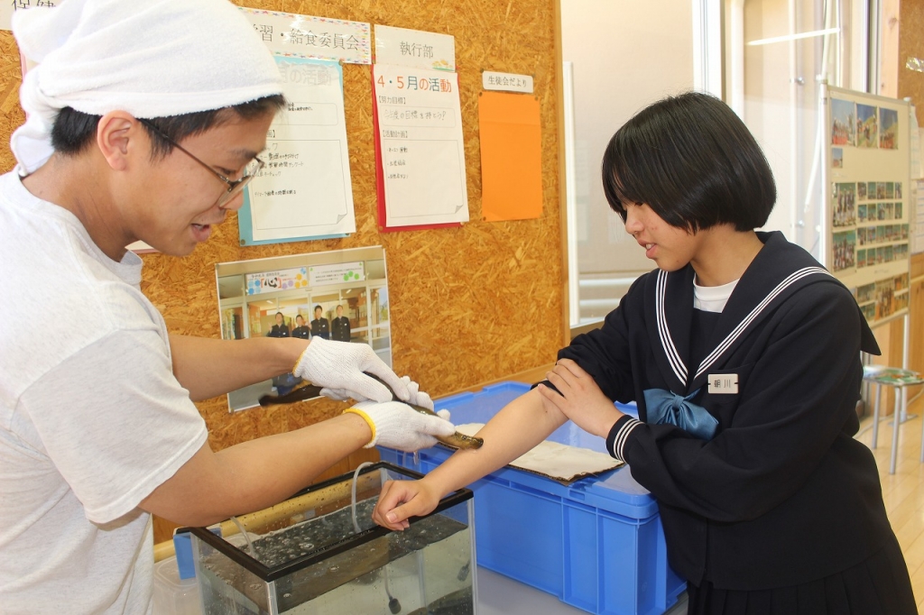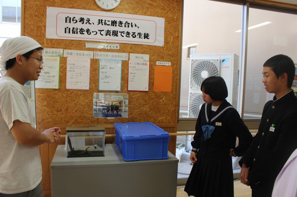 ヤツメウナギの人工受精を行い、その受精卵を本校に設置してくれました。