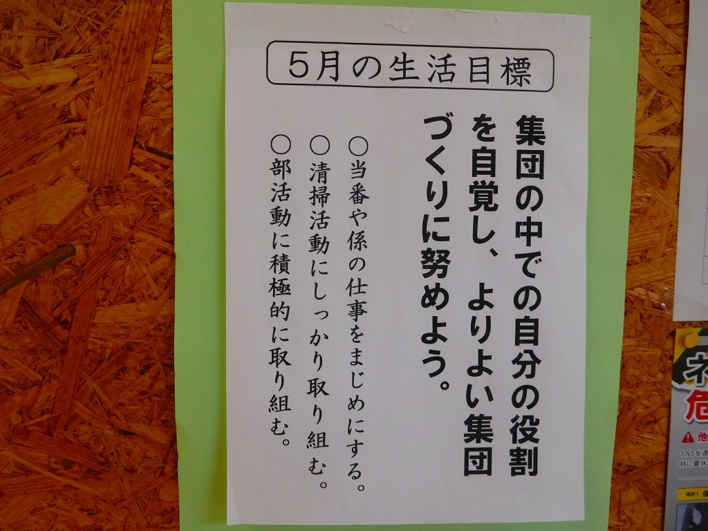 ・5月の生活目標:「集団の中での自分の役割を自覚し、よりよい集団