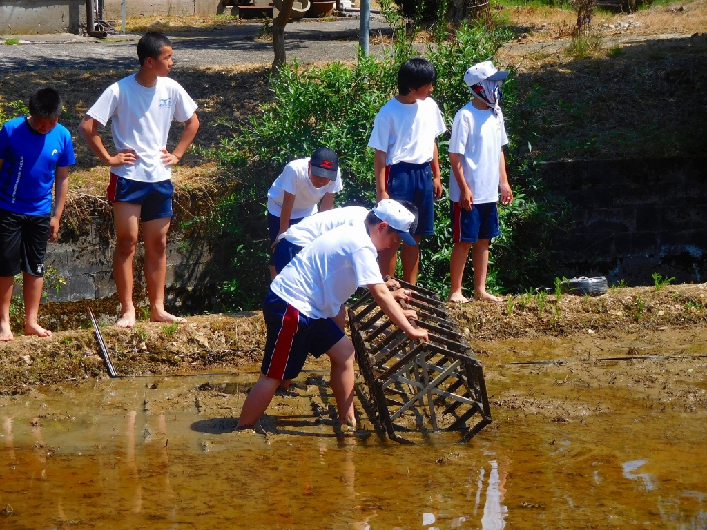 総合学習で1・2年生が金蔵地区で田植え体験を行いました。