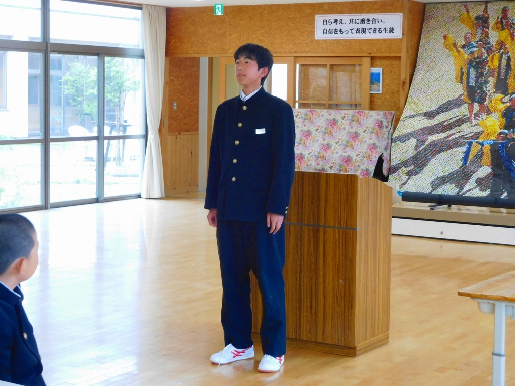 最後に生徒会長の松本君よりお礼の花束がわたされました。