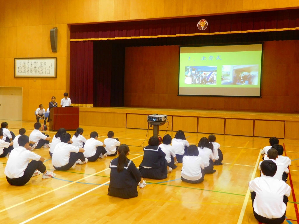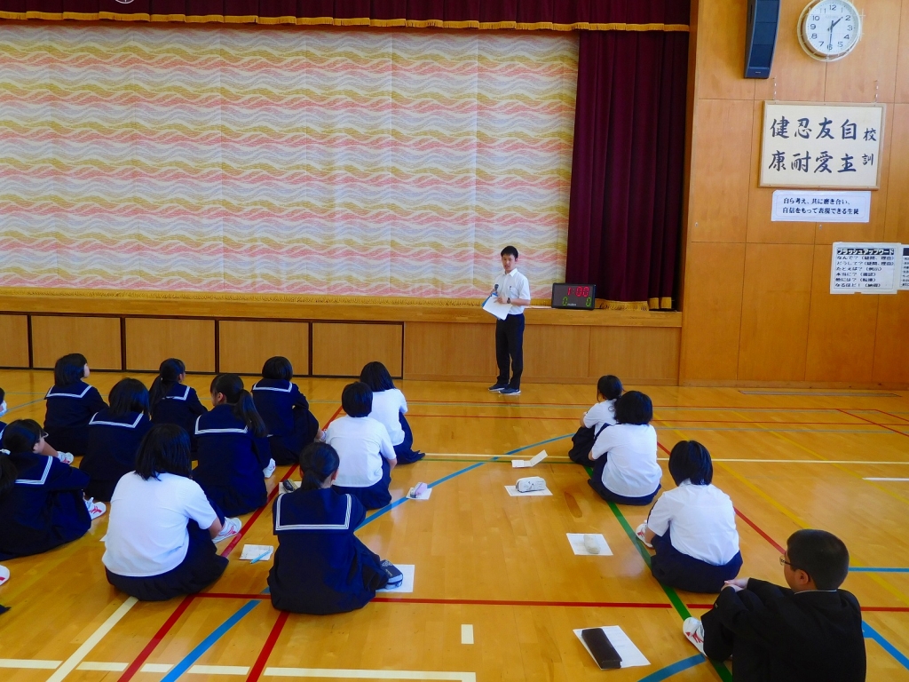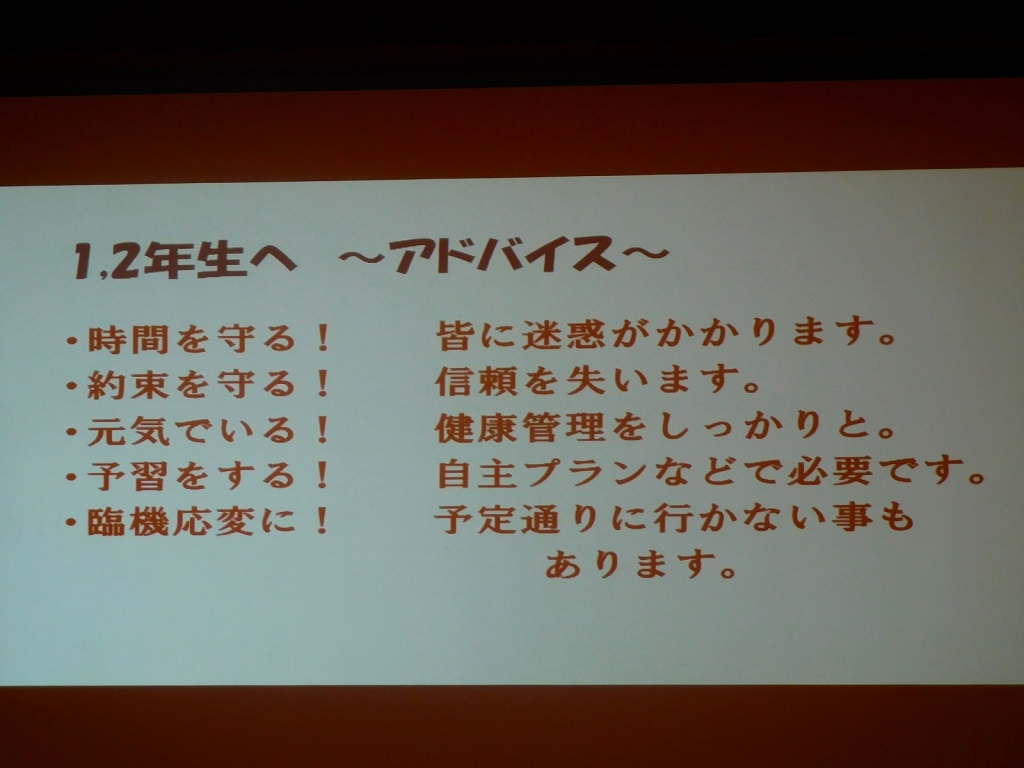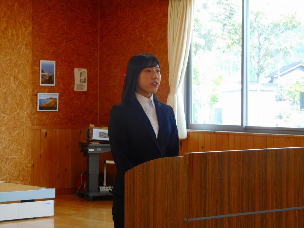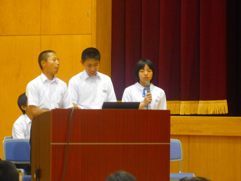 パワーポイントを用いて、1・2年生にプレゼンをしてくれました。