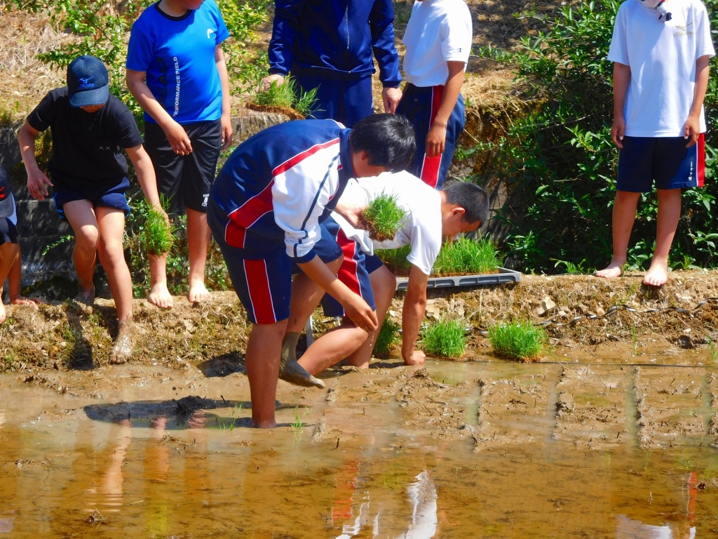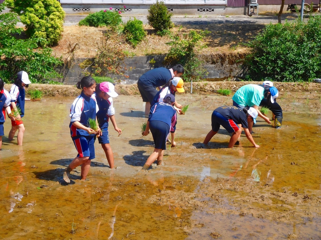 総合学習で1・2年生が金蔵地区で田植え体験を行いました。