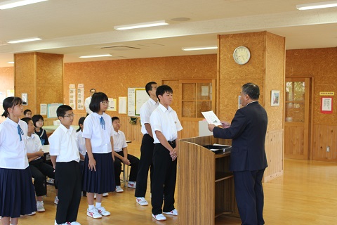 9月30日(月)生徒会の任命式が行われました。今日から後期生徒会が発足し、新体制で東陽中の後期がスタートしました。よりよい学校になるようみんなで頑張っていきましょう。