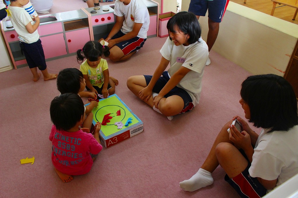 輪投げ、ボーリング、トントン相撲など生徒が考えた遊びで楽しい時間を