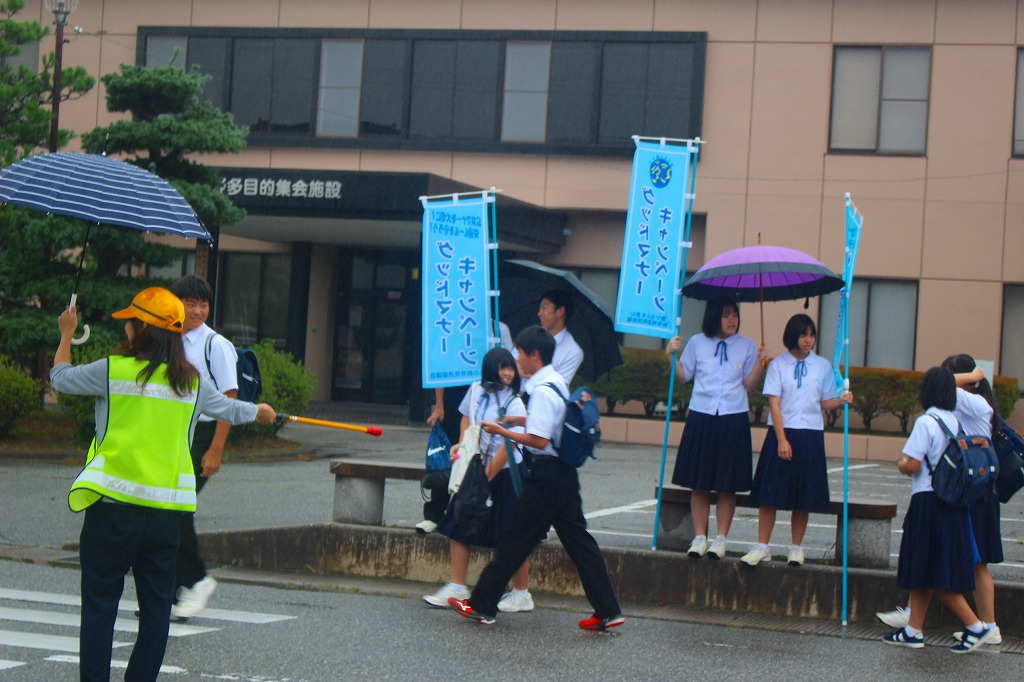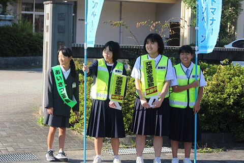 9月27日(金)本校生徒会執行部の生徒が町野小学校へ行き、合同で挨拶運動を行いました。毎日、地域の方々にもご協力いただいています。元気のよい挨拶を目指してみんなで頑張りましょう。